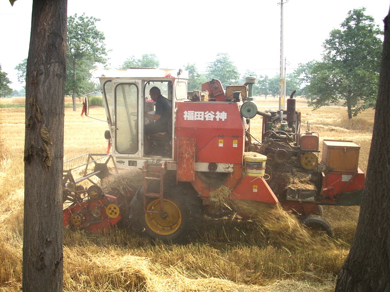 到了六月10号左右,我们这里开始了抢收的热潮.休息了将近一年的收割机终于派上用场了,这些天,正是它们大显神威的时候.路上、田地里,街道上,到处都是它们的身影。以前的收割机有三、四种呢,现在都换成了这种“福田谷神”。它收割速度快,而且收的很干净。随便问了一下,今年的收割价是每亩35--45元。比去年价格稍微高一点。