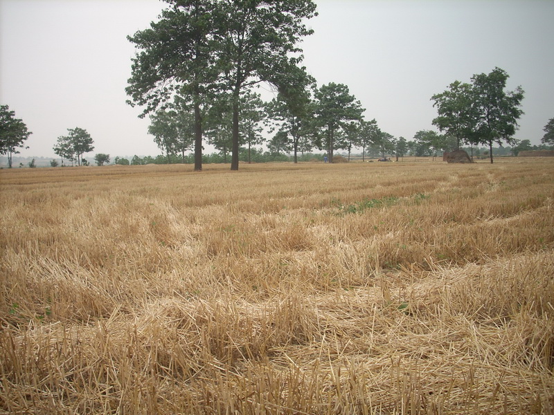上午这里还是一片麦地,到了下午,就只剩下麦茬了,人们都感叹机械化的好处。难怪现在再也没有人用镰刀割收麦子了,如果用人割的话,就这些麦子,需要至少50个人三天的时间呢。而且割下来后,还需要拉、碾、扬等一系列工序方能变成颗粒。简直不能和机械化相提并论。现在人们收麦子,非常简单,不管你有多少亩地,你只要一个人骑上车子,带上钱,30亩的麦子2个小时的时间就会变成颗粒拉回你的家中。