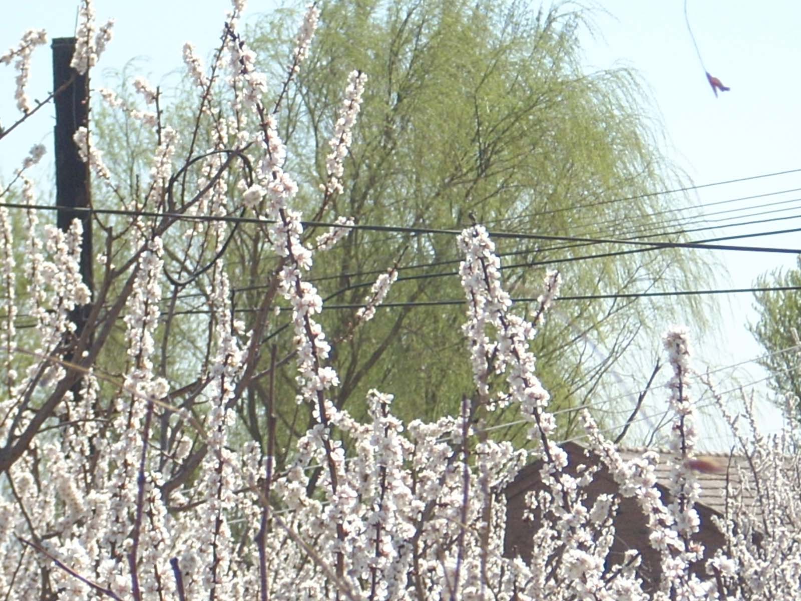 春天里最早开的花是杏花,远处的杏树林开花了,白茫茫的一片。我们边玩边向杏花林走去。走近了,一朵朵杏花争相开放。枝条上满是花,把枝条裹在杏花里,整个杏树林都被花朵掩映了,特别好看。