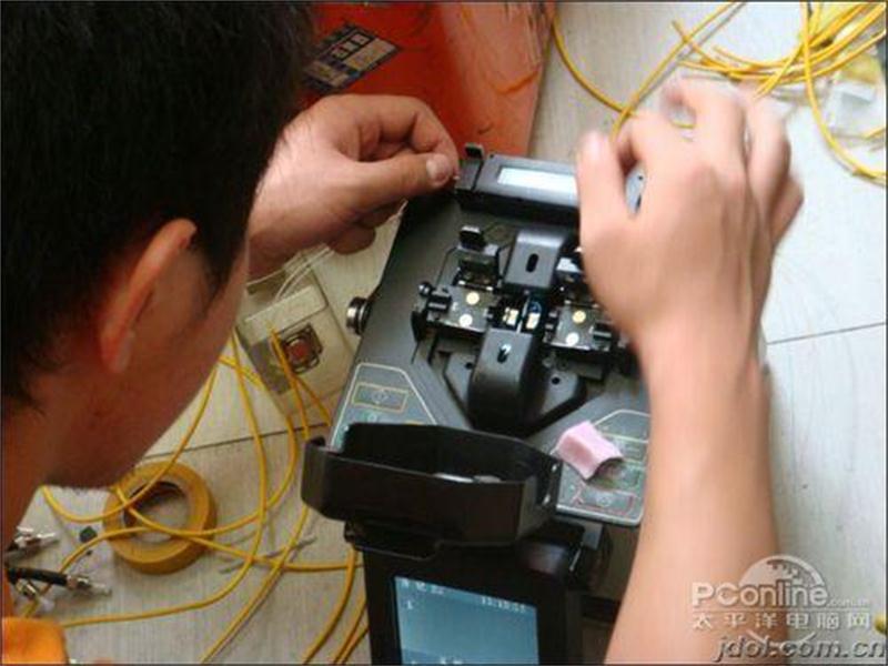 在我惊讶的时候,两个叔叔已经熟练的将光纤的保护皮给剥开了,然后把光纤接头挨个挨个的安装在光纤盘上,选好光纤的长度,接下来,就是进行另一边的光纤线用同样的方法把线剥开,取出最细的那根白色的,将上面的保护膜刮干净,在用专业的光纤线刀,将去减去多余的部分,在上面套一个白色的细管,作为保护的作用,两头要擦干净,分别放入光纤焊接机的两边,进行缝合。进过4-5秒钟的时候,会有两声滴滴的声音,就表示焊接好了,下面就可以对光纤保护管进行加热,最后就可以完成了。