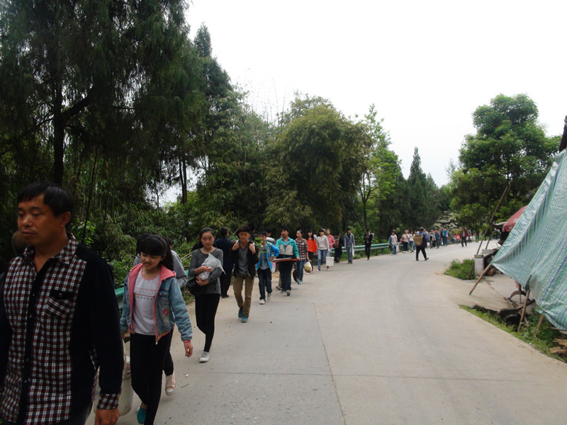 转眼间到了周二,各小组长早早地带领组员备齐了野炊用的东西,大约九点我们就齐集操场准备出发了。各班清点好人数,交代清注意事项,便浩浩荡荡向圆山子挺进了。大部队行进在路上像一条前不见头后不见尾的长龙。大家带着粮草辎重,丝毫不觉得劳累,一路嘻嘻哈哈还不到一小时时间就到了目的地。