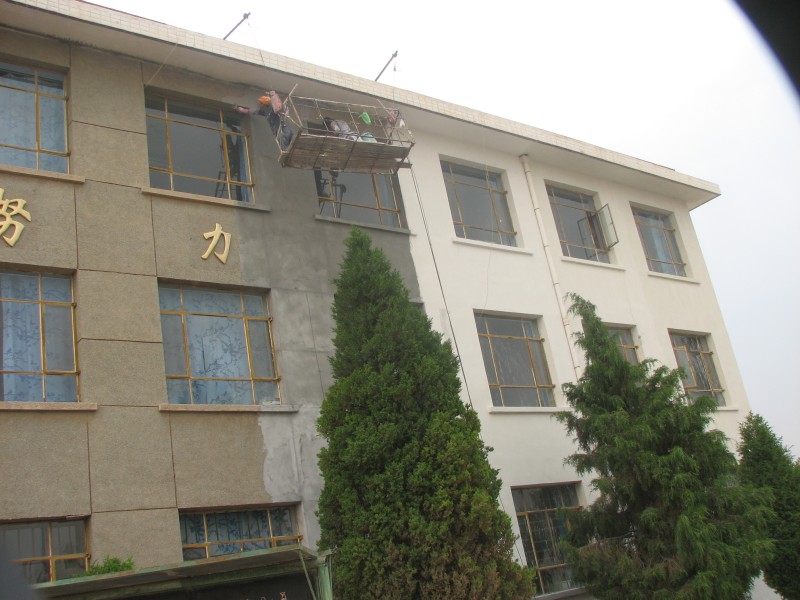 在他们的辛苦工作下,墙面都变得平滑干净.