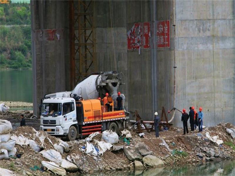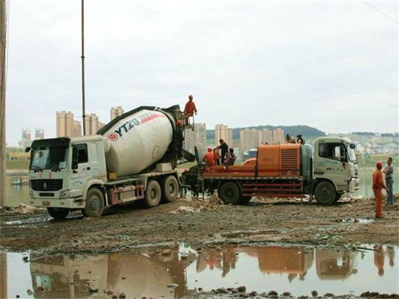 当管道架好后没半个小时,一辆水泥罐车进入了我的视线,当水泥罐车慢慢的倒车到泵车的水泥输送口的时候,罐车的罐马上发生了变化,原来是顺着转的,现在反过来转了,只见水泥慢慢的进入输送口,通过泵车的发动机的轰鸣声中水泥开始慢慢的进入管道,最后进入大桥主干管道。