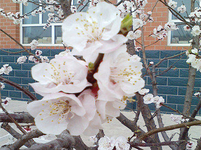 春天来了,校园变得更加美丽。杏树开花了,花儿是那样的美丽。我深深地被它的美丽吸引了,靠近花儿闻一闻,我闻到了一股花香,一股花香带来的甜蜜!我不禁感叹道:好美呀!