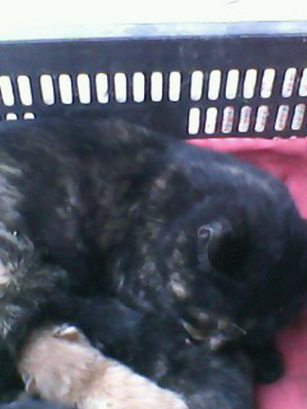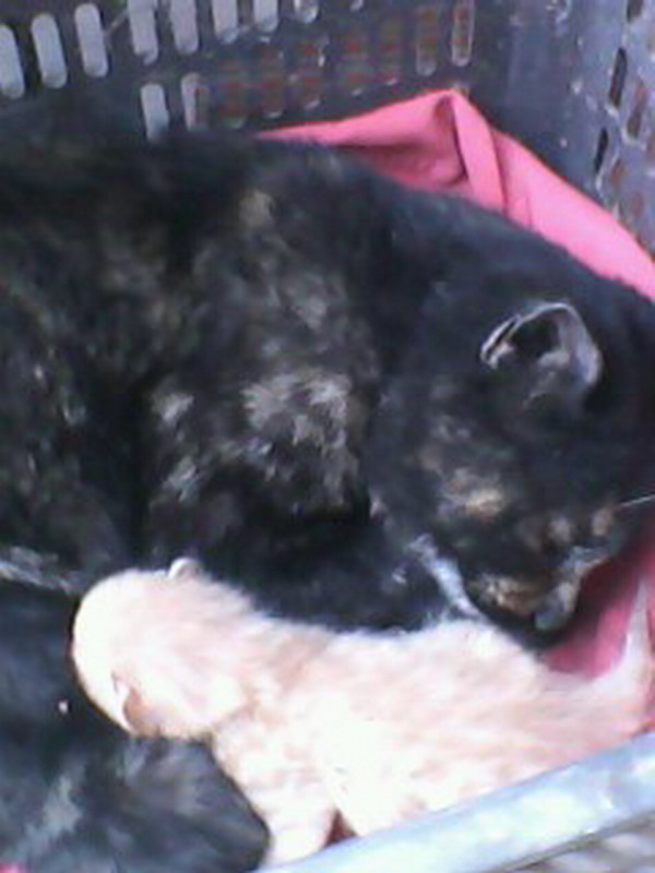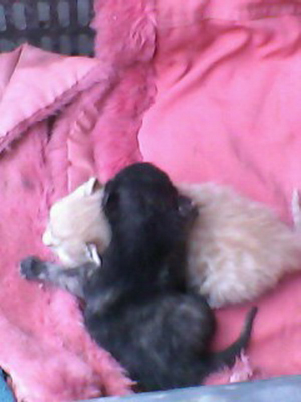 不过一小时,Alice便产下三只可爱的小猫,由于刚出生,小猫全身还是湿漉漉的,这时的Alice像个温柔而尽职的母亲,慈爱地舔着小猫的全身,又过了一两天,小猫皮毛的颜色已渐渐呈现,我仔细观察了一下,是两只小黑猫,还有一只小花猫,此时的小猫咪连眼睛都睁不开,只有老鼠大小。但在第三天,却有发生了一件令人伤心的事:一只小黑猫死了,大家都不知原因。Alice也许还不知道,她一直呆在小黑猫旁边,十分怜爱地舔着小猫,温柔地叫着,仿佛是在呼唤她的孩子,看着Alice的样子,大家也不觉得伤感起来。