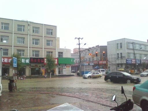 马路上,橘黄色的车灯像太阳一样照耀在大地上。放学了,同学们像潮水一样涌出学校大门。顽皮的小雨点滴在我的脸上,滑进我的衣领里。一阵清凉传遍了全身。
