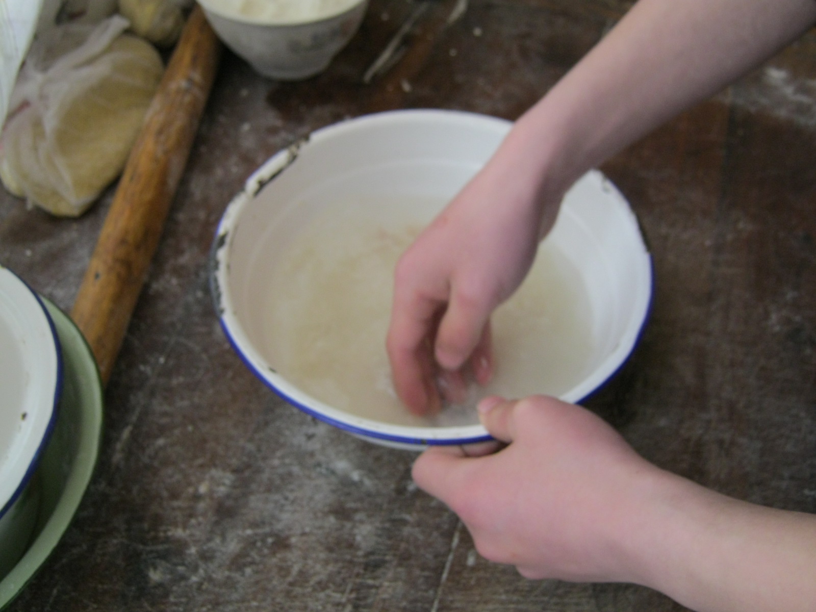 我首先用碗把米从袋子里盛出来,用一些清水把米洗干净;然后用手把洗干净的米放进电饭煲里,再倒入适量的水,最后把插头插进电源里,就等着米饭熟了。