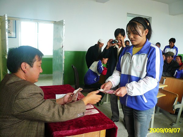 一中助学联系人张志云老师是一个直爽豁达而且很负责任的人,他负责团委德育、政教工作,同时还是个政治课老师,曾经申请过的捐助有福彩基金、建行基金、北大研究生院的个别捐助、江河源助学组织,但这些捐助大多没有延续下来。一中的