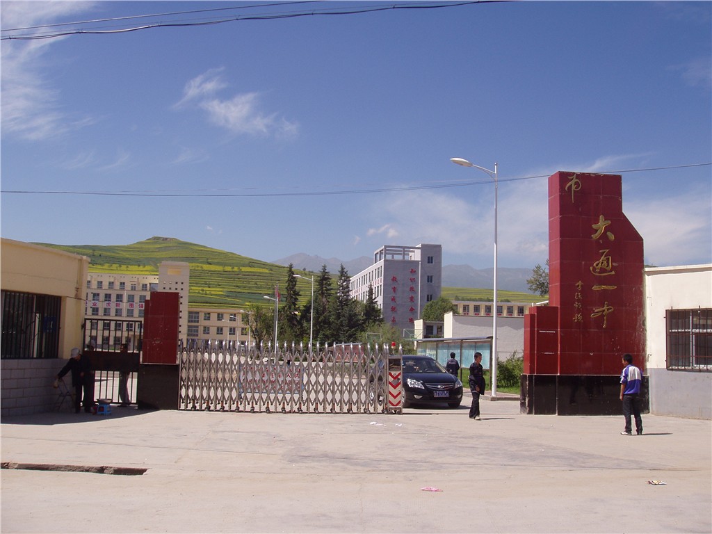 大通一中位于大通县城关镇,历史上的县城所在地,是一所完全中学,包括初中部和高中部共六个年级,每个年级16-20个班。大通一中属于第二批招生学校,招生范围在周边的十个乡镇,其中一半乡镇是在海拨较高的贫困地区。