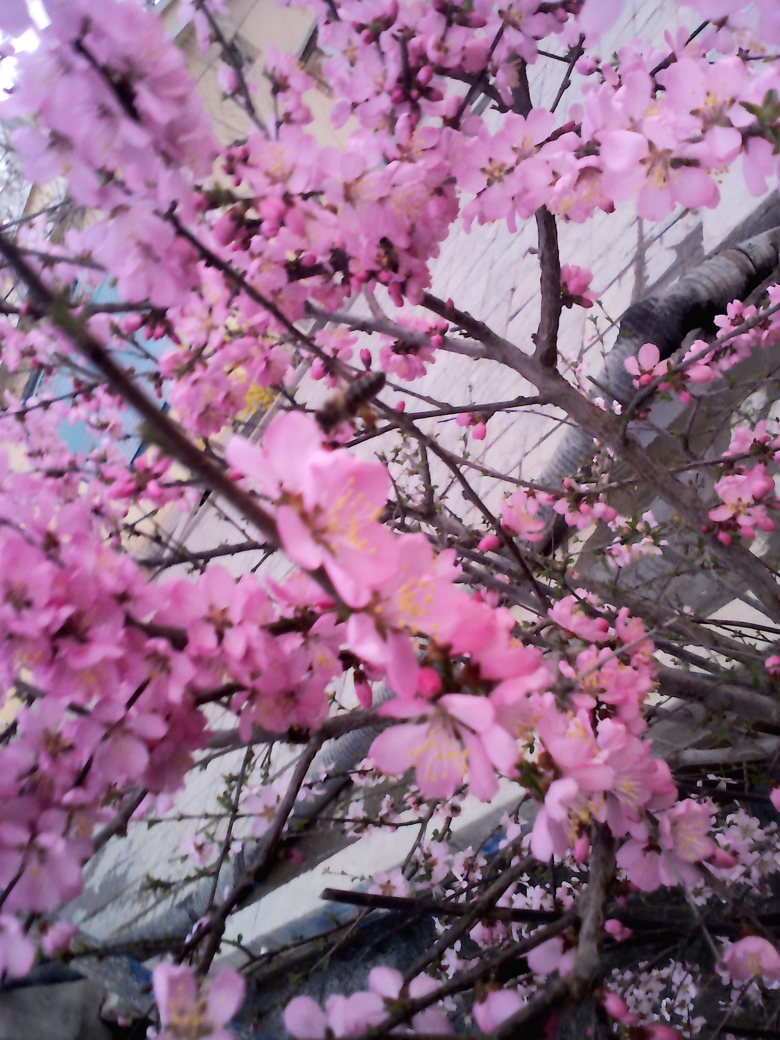 粉红色的桃花也竞相开放,严寒的冷酷无情曾使它们凋零,现在它们把积攒下的劲儿都使了出来。花团锦簇,热热闹闹的开满了枝头,向来往的同学们展示着迷人的风采。我们在这春光灿烂的校园里学习、生活,学校这个大家庭让我们感受到了幸福和快乐。