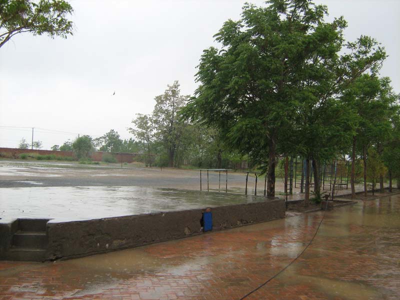学校的花池不是集中的,这个池子灌完,刚下课的老师又来帮忙了,他们还要将管子抬往另一个花池。有的老师负责关闸,有的老师负责抬管子,长长的水管伴着泥水,老师的衣服早已经脏乱不堪了,可老师们没有怨言,硬是抢时间用了整整一天半的时间将花池灌完。