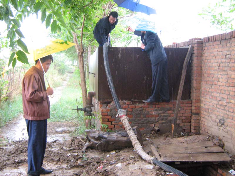 终于等到了灌水的那一天,可天公不作美,从清早就淅淅沥沥下起了雨。学校没课的老师暂时就充当起灌水员。学校围墙边有一个存水库,五十多岁的后勤老主任就和老师冒雨将水泵安放在小渠里。老主任将水管接到水库里,年轻的政教主任赶快爬上水库,将里外水管接起来,老主任一边为他打伞,一边不断提醒他要接好。
