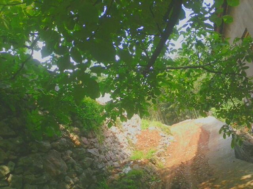 在回去的路上,我照了一张她家下面的小路的照片。一棵绿茵茵的核桃树下,一条小路走过,,来往的人,累了可以靠在树下休息,赶巧的话,还可以尝尝鲜核桃!日子过得很滋润。