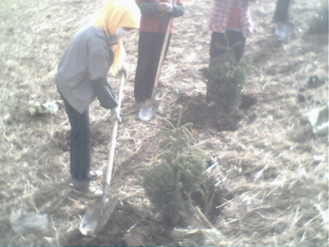 两个人一组,一人负责挖坑而另一人负责扶苗,培土。我和妈妈一组,我负责挖坑。挖坑可是一个累活因为土壤坚硬挖一个坑很是费力,但是为了能让妈妈少累些我就多干些,累一点无所谓。转眼间就到了中午,大家围坐在一起吃了点干馍馍喝了几口水就算是吃中午饭了,但有水喝已经很不错了,听妈妈说有有时一口水都没有,一天赶下来上字都快冒烟了