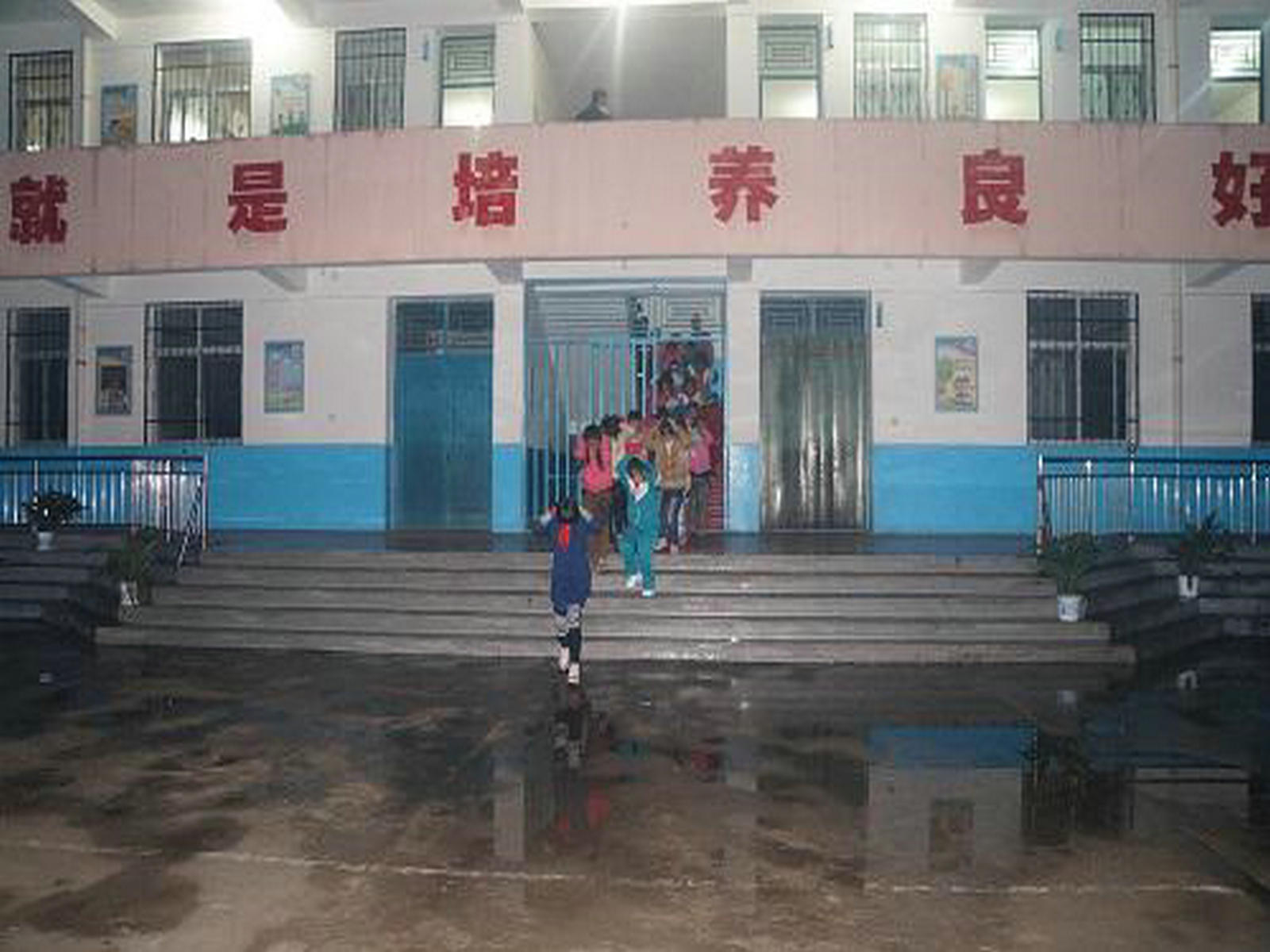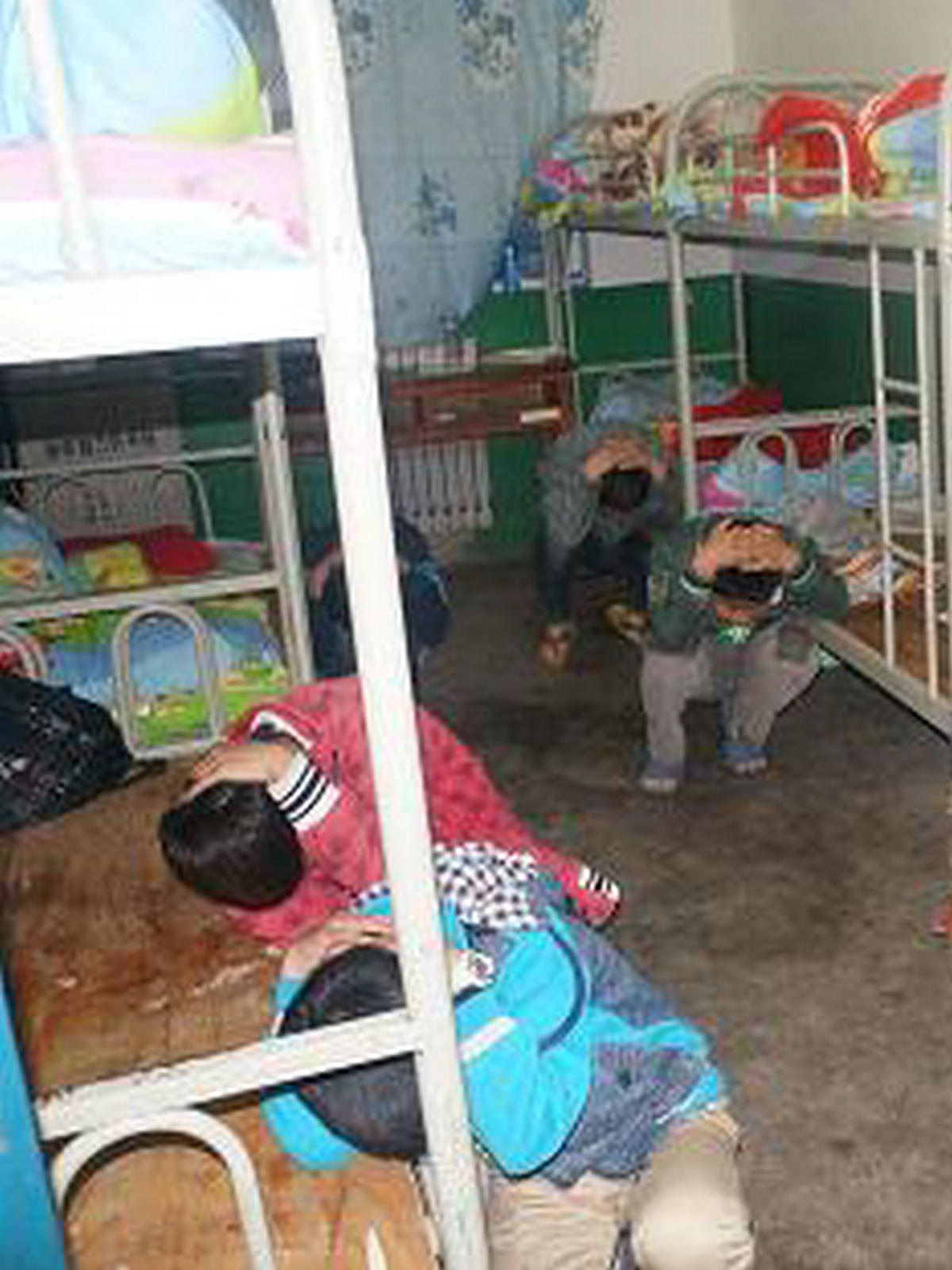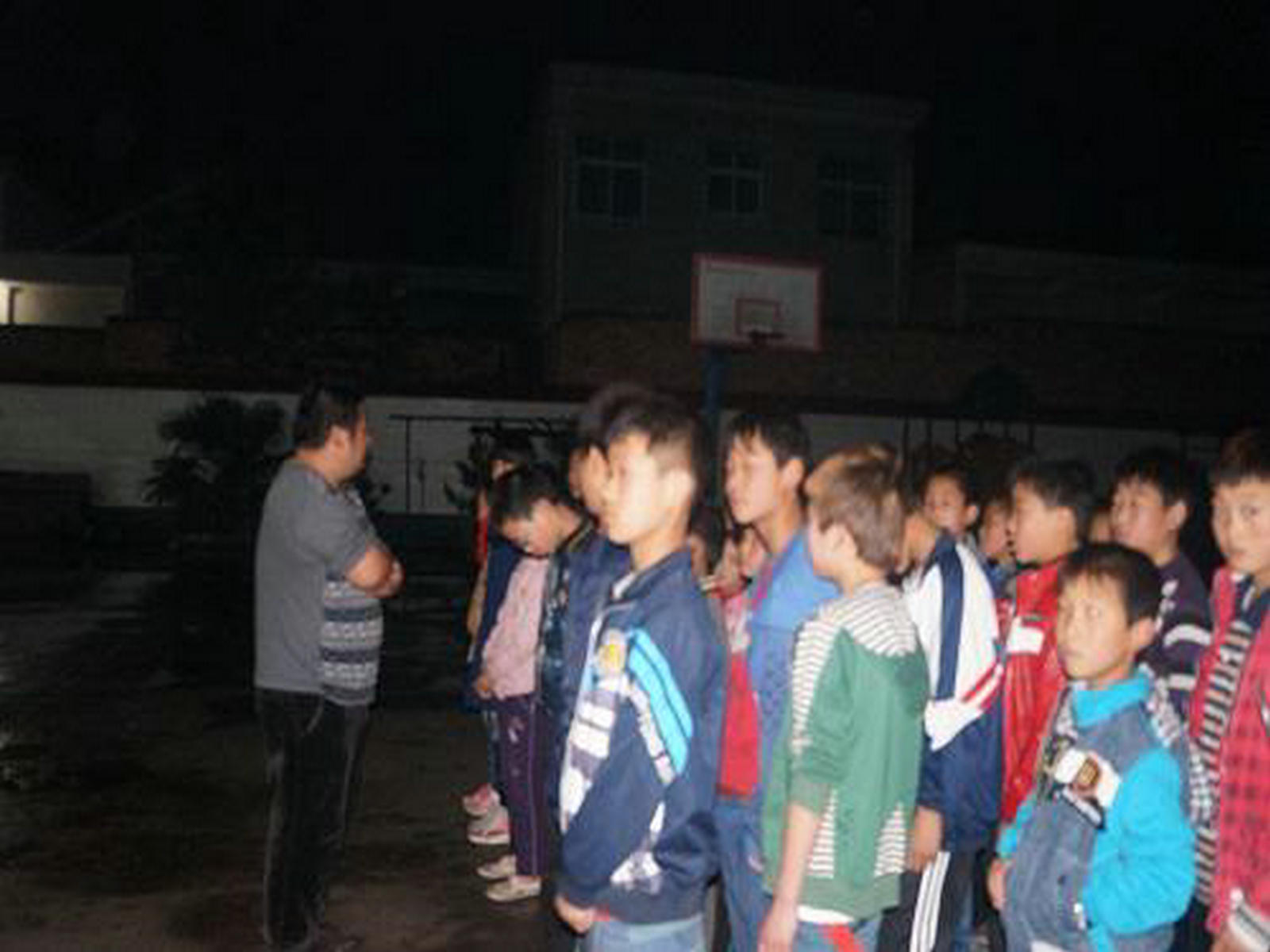 4月15日晚八点,随着一阵急促的哨音,西柿林小学寄宿学生在老师们的指导下,用手护住头,就近躲在床边以避开地震开始时的强烈震动。当铃声再次响起时,学生们双手抱头迅速进行安全撤离,撤离到操场中间宽阔地带,按预定方案进行疏散。整个过程用时不到2分钟。