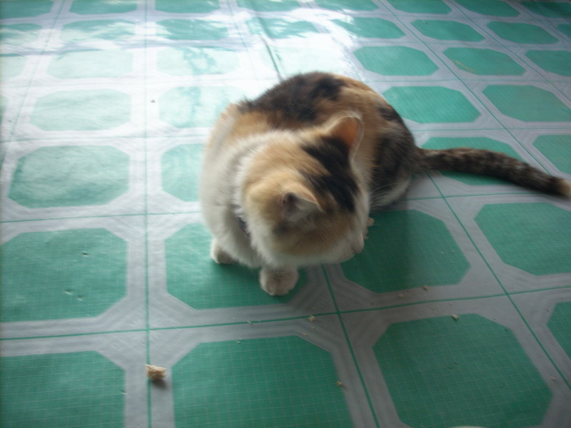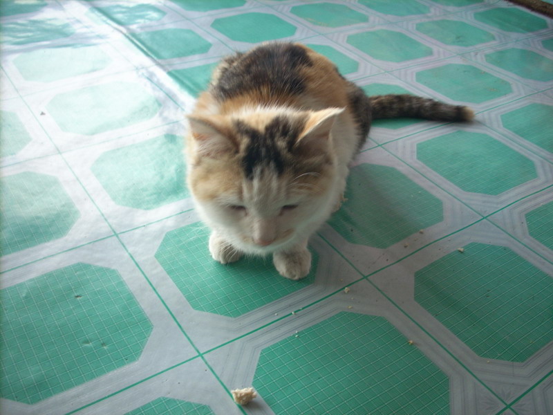 瞧,这乐乐一蹦一跳,就上了床,因为它喜欢热的地方。 乐乐有一双敏锐的黄眼睛,一张有许多白胡子的脸,一对如三角板似的耳朵。它有一身黄白相间的衣服,不用说乐乐是一只漂亮的小花猫。乐乐之慢慢跑