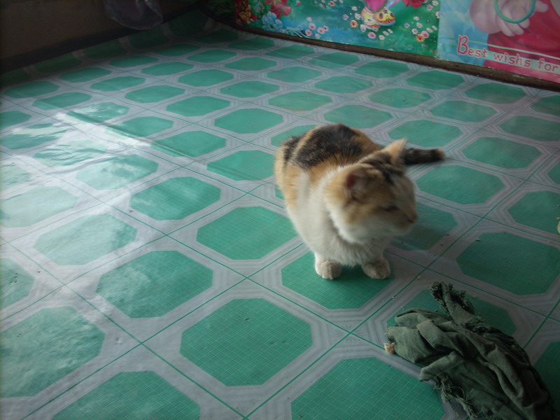 他好似不以为然,仍旧踱着股子欢快劲走着,但当我们接近它时,他便跑了起来,我们又紧跟,但当我们接近他时,它便跑起来冲我们"喵"叫了一声,接着一个猫步,上了墙,我们只能干瞪眼,什么也说不出来。