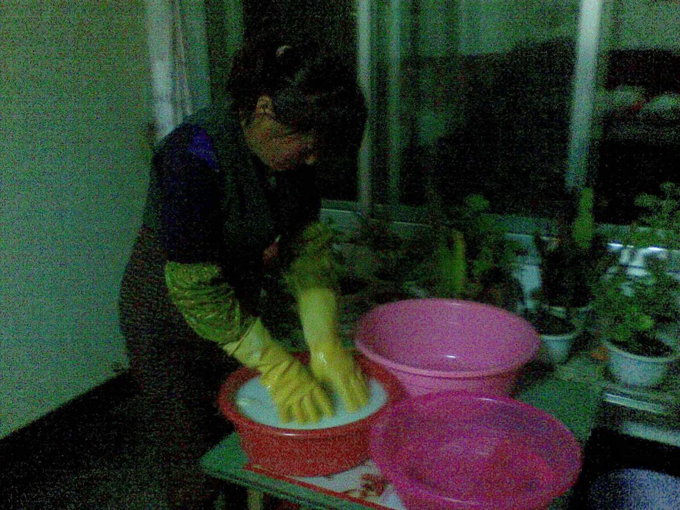 在晚上,我们都睡了,而妈妈却在一个劲的洗酿皮,很晚才能够洗完。早上又早早的起来,总是天还没亮就在灯光下摆弄着酿皮盘,而这时的我们还在呼呼大睡。