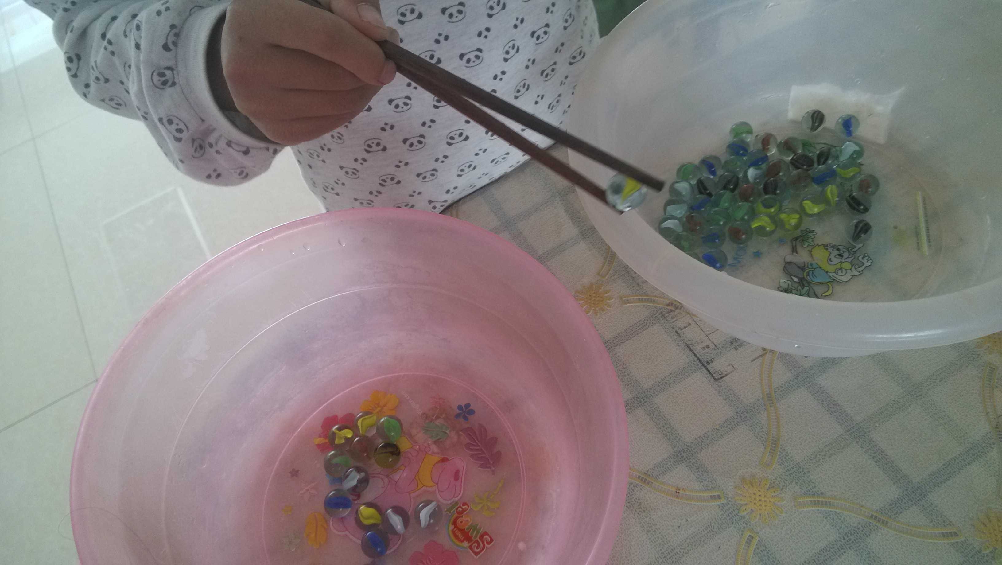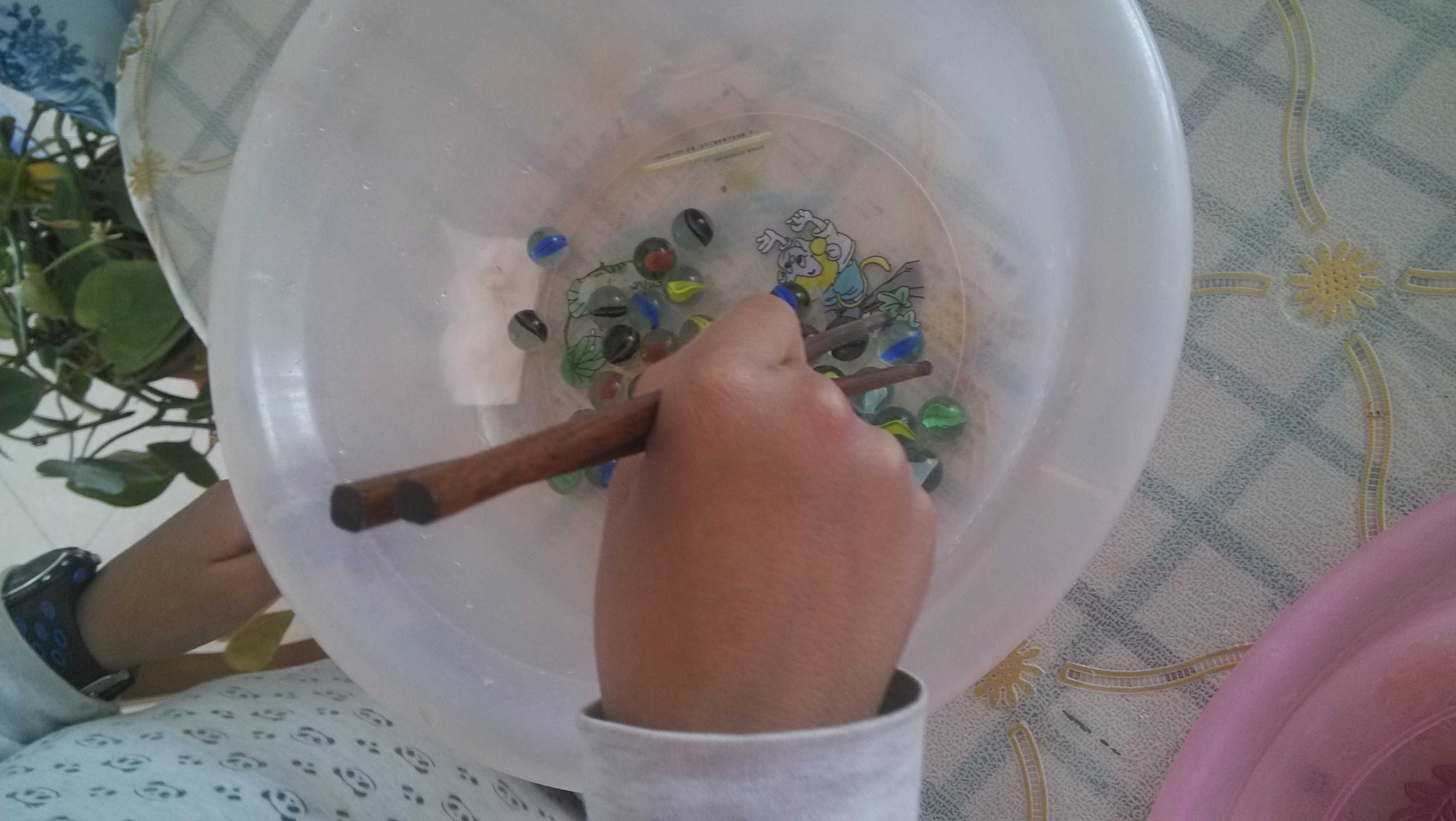 此时,我的胳膊和手腕已感觉到酸疼,我有些不耐烦了,但转念又一想,我是代表班级报名参加的,这样轻易地放弃,岂不丢了班里的脸?最起码自己得要做出些努力呀,这样即便是失败了也无怨言。想到这里,我又开始静下心来练习,我一边练习,一边思考:怎样才能让这圆溜溜的球夹起来呢?在反复的练习中我终于掌握了夹球的方法:我改掉了之前拿着筷子垂直向下夹球的动作,平拿着筷子,并让它与玻璃球之间形成了45度角再去夹,果然成功地夹起了一个,我迅速地把球扔进了紧挨着的一个盆子里,并叫来妈妈帮我计时。可还没到十秒,妈妈就叫我停止夹球,说我这是作弊行为,应该将两个盆子之间拉开距离,然后再将夹起的球平稳地放进另一个盆子里才算数……我又按照妈妈讲的重新开始练习,加大难度,拉开盆子间的距离。每天放学回家,我要做的第一件事就是练习"夹球"。数日后,我终于迎来了这场比赛,由于赛前的充分练习,我以1分钟夹出12个玻璃球的成绩赢得了胜利,我的心里有说不出的开心!