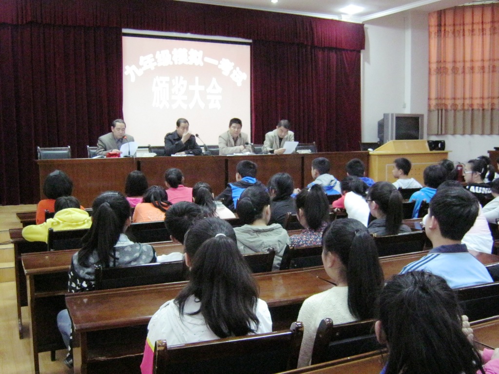 这次参加会议的是九年级全体师生,他们既兴奋又紧张地等待着结果,多功能大厅里一片寂静,都在静静地听着领导的发言。
