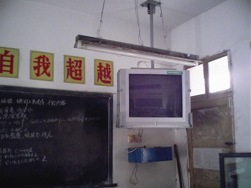 等电视和风扇装上后,学校又组织人员将所有教室粉刷了一遍,现在我们的教室宽敞明亮,设备基本齐全,现在的问题就是冬季的取暖以及课桌问题,我们学校随着规模的扩大,学生不断增多,教室和课桌比较紧缺.许多教室里放的都是原来的老式桌子.既笨重又占地方.