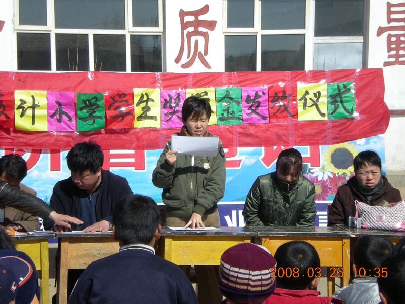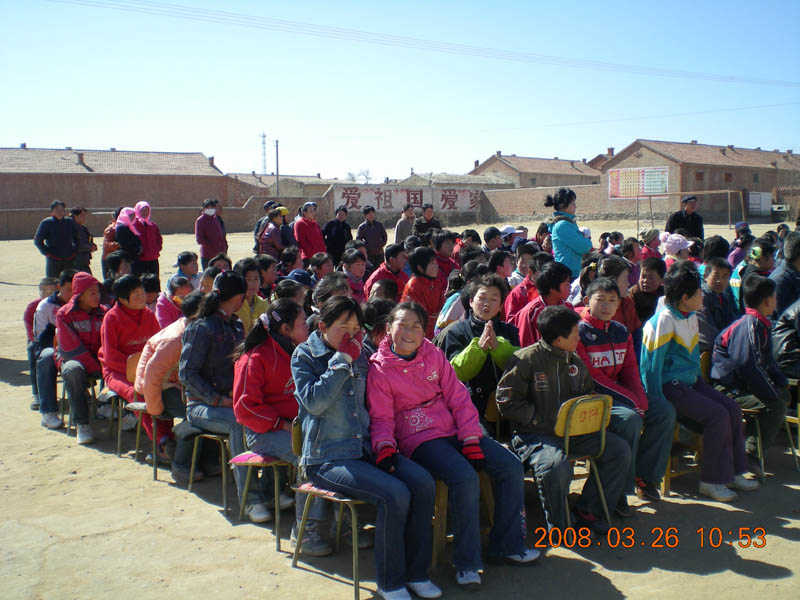 上完两节课,我们来到操场上,校领导和宣明会的工作人员在主席台就座。宣明会的工作人员宣布了获奖名单,校长又讲了话,先代表全校师生感谢宣明会对我们的关心,然后又鼓励我们要向获奖的同学学习。