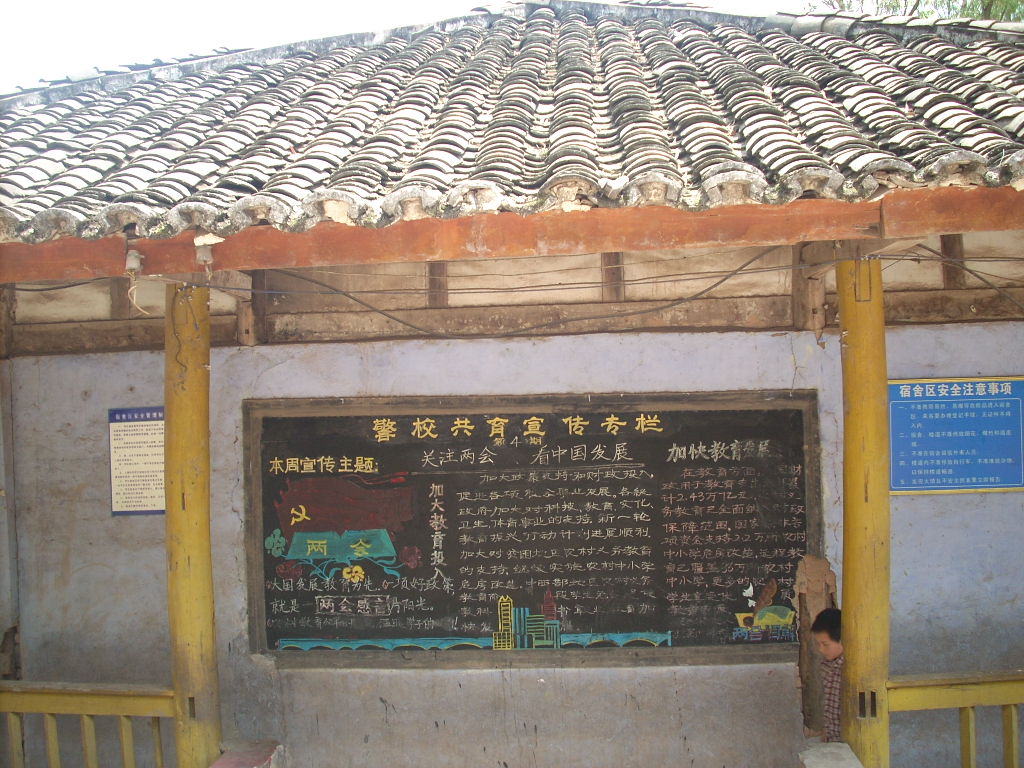 教学楼是很早以前修的,两层,木制结构,在512地震中,它却挺住了,只是比以前更危险了,可以看到墙上的洞,里边的砖都松动了.