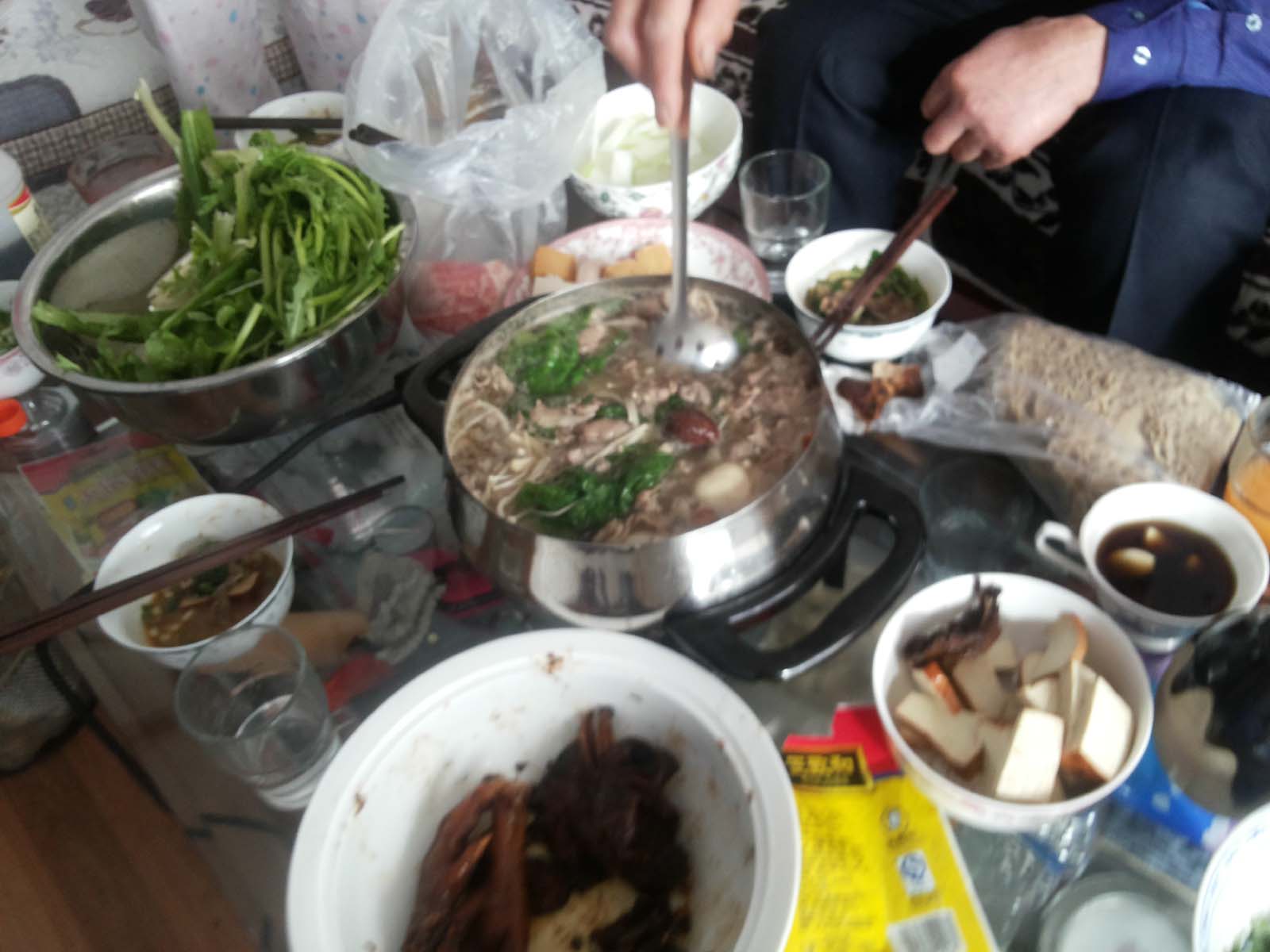 中午,我们来到舅舅家,一进门,舅妈已经准备好了饭菜,涮羊肉,真香啊。我迫不及待的去洗手吃饭,但看见越来越可爱的小表弟,我就没心思吃饭了,和小表弟玩儿好一会儿。