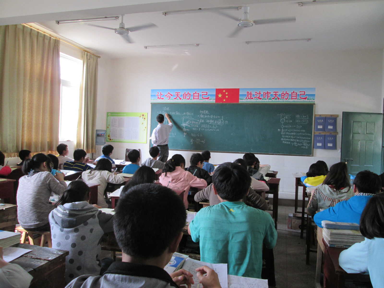 走进教室,压抑的气氛都快让我们窒息了,努力的奋战使学习气氛极其浓厚,这是修业班的弟弟妹妹们感受不到的,我们要做到:让今天的自己胜过昨天的自己,只有这样才有可能赢得成功,自己最大的敌人就是自己,只有战胜自己,才能不断超越自己。