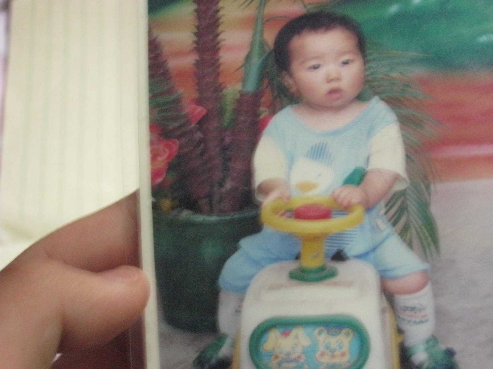 第二个我,骑着儿童玩具车量,两只胖乎乎的手紧紧地握住车把。穿着一件短袖,胸前那只鸽子,就好像在天空自由的飞翔,那时我才三岁多