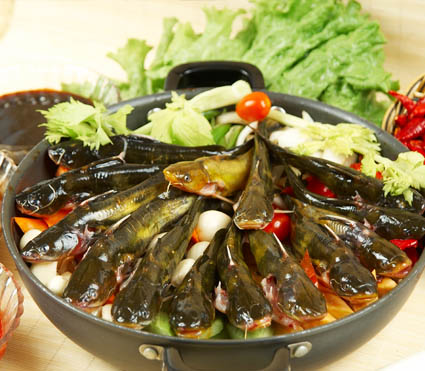 黄辣丁的吃法很多,可红烧,可酱焖,可煎炸,还可做豆腐鱼汤,哪一种味道都不错。但家乡人最喜欢的还是酸菜豆花黄辣丁火锅。