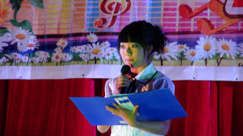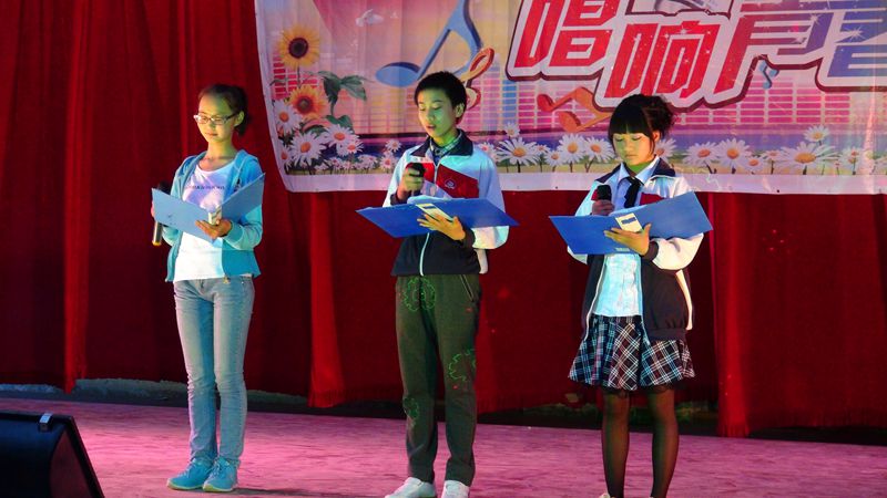 此时,三位准主持人齐聚一办公室,念着主持稿......“你们读慢点儿!”“王XX你要再慢 点儿,J、Q、X要读准!”“席XX你呢,胆子要大点儿,把声音放开!”“邢XX,要有节奏地读,该用情的时候才用情!”“嗯......总得来说还可以,声音挺和的。就是要注意,一个内容读完了,要停顿一下,要多读,如果上台还这样,可不行。还有读错了不要紧,但不要让同学们听出你读错了,明白吗?”三人齐齐点头,互相看了一眼,走出办公室......