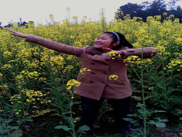 阳台上,我躺在摇椅上,欣赏这一大片怒放的油菜花,是何等的惬意啊!一大片金黄色随风摇动,看着好似琼瑶仙境的美景,我的心情也是格外的愉悦。