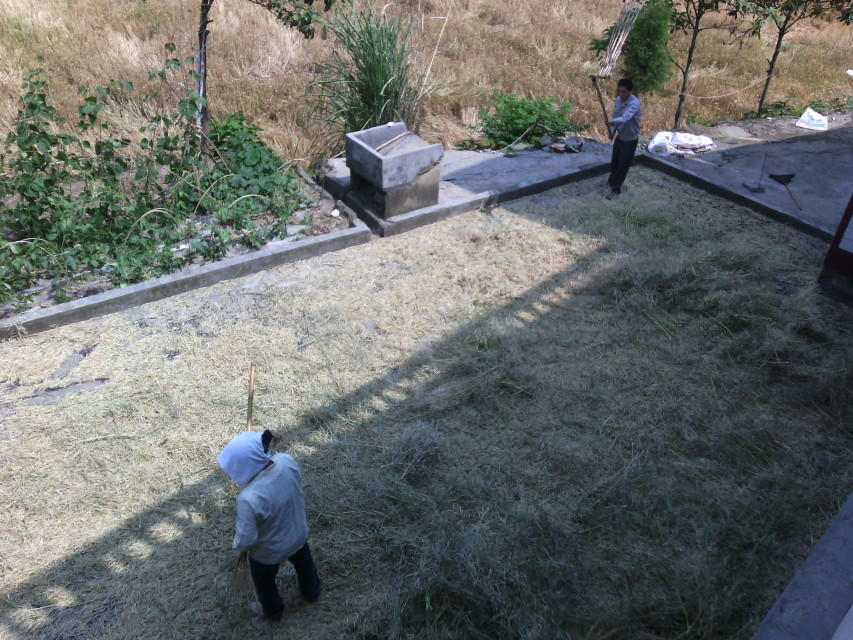 因为上学的缘故不经常干农活所以手法有些生熟,最后不得已爸爸也加入了我的行列,经过爸爸的一翻调教我也终于能跟上他们割麦子的节奏了。这令我十分的开心因为能帮上爸爸、妈妈们的忙了,我希望我自已能使他们感到欣慰。 经过一个小时的铺麦子过程,我终于超过了爸爸、妈妈们割麦子的速度,而且偶尔还能休息一小会儿比如喝喝水什么的。