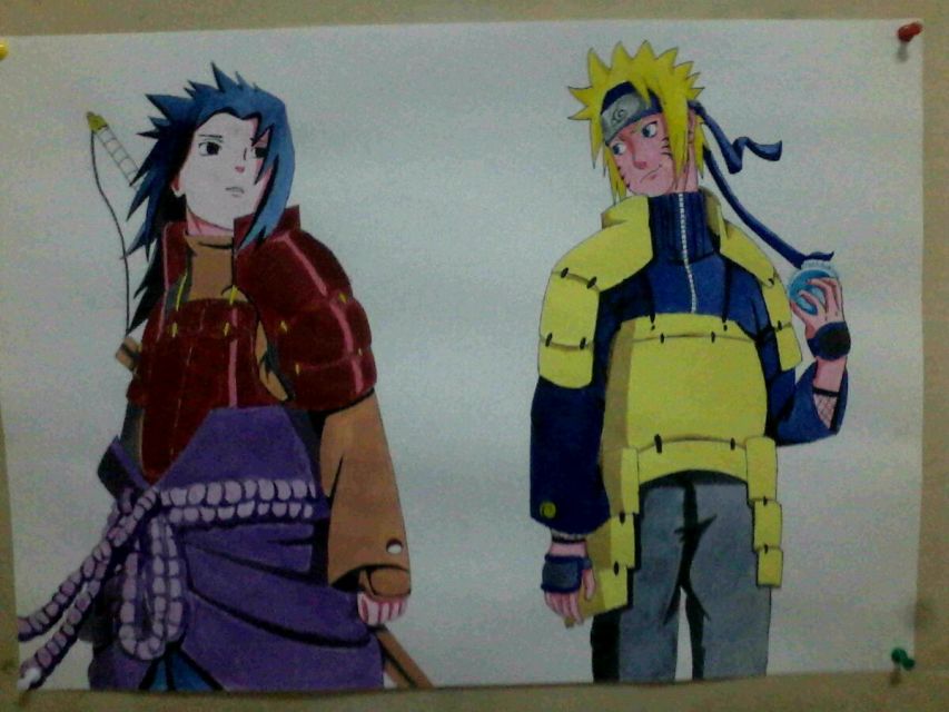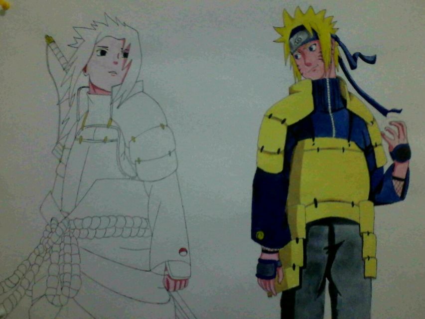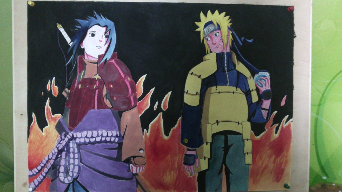 这次我绘画的作品是《火影忍者》主题是鸣人与佐助。这可以说是一部颇具历史记忆的动漫,在我父亲那一辈的时候《火影》的漫画就诞生了。记得我初中时代的时候去小摊贩那里买碟片的时候,当时老板就感慨着说:"我们那时天天追着《火影》漫画看,而你们现在已经可以看到成品动漫影视了。" 其实我知道,在日本许多优秀的漫画作品都被制作成了动漫影视。回想曾经我也为那个理想的世界所深沉的吸引,而后跟家里人闹了许多的矛盾……