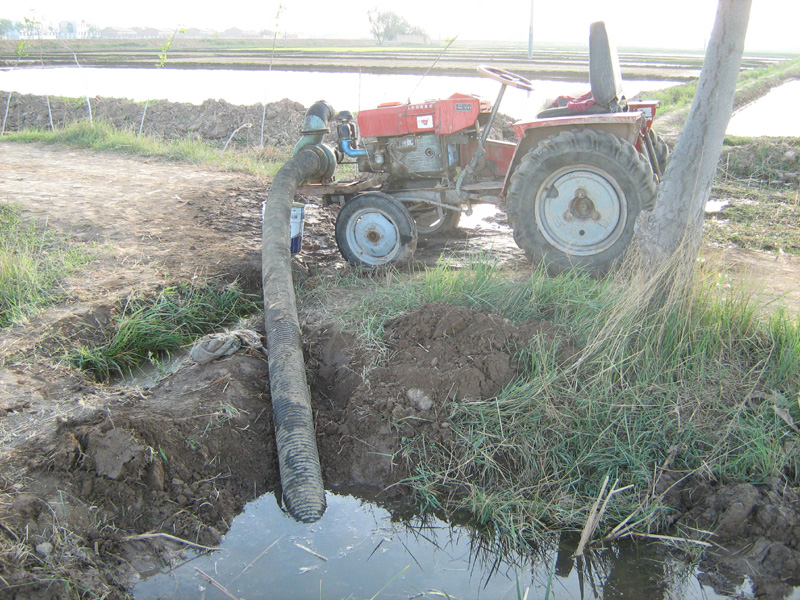 什么办法呢?就是每家每户都购买了立式水泵,这种水泵用四轮手扶做为机械动力,带动立式水泵将渗漏在水沟里的水抽到小渠里,人们再把水从小渠引到稻田里,这样一来,稻田可以及时得到灌溉。以前排水沟的水非常多,可是现在就少了,主要原因是让人们把水全部都抽到稻田里了。通过这种办法,可以缓解供水紧张的问题,也为水稻的正常生长提供了有力保证。这样一来,农民伯伯就有了收获的希望。