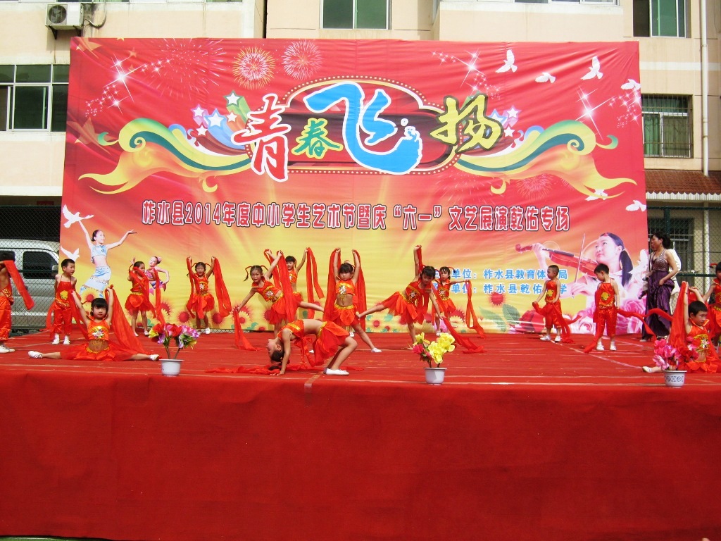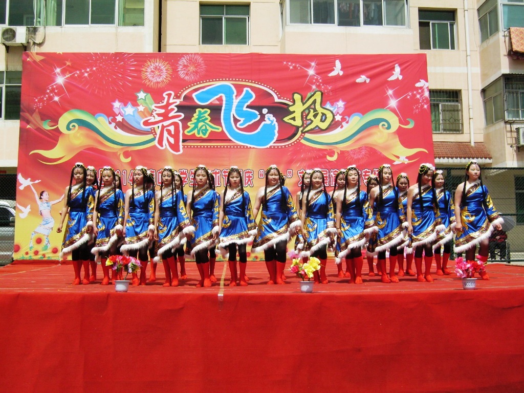 这个舞蹈是我们学校七年级学生跳的,服装很亮眼,舞蹈也很好。感谢她们为我们带来的这个舞蹈。