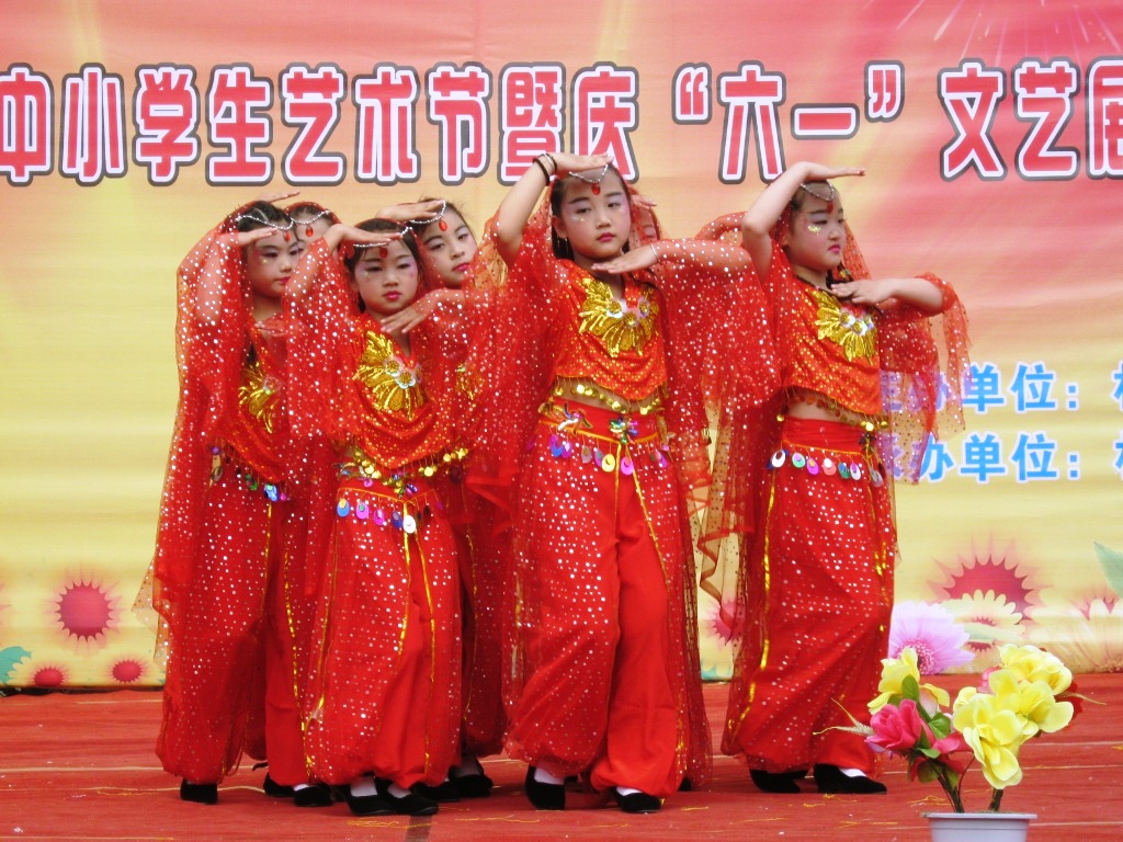 她们跳的是著名曲目,掀起你的盖头来,真的无法想象这些小朋友们能把这首歌演绎的惟妙惟肖,尽管那天的太阳很大,但是我们能欣赏到这么好的舞蹈,那也是值得的。