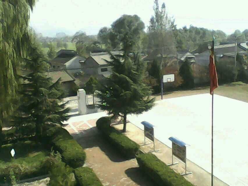 走过了让我们心情舒畅的林荫小道。下面就应该进入广场了,广场中央是升旗台,不知为什么,一走到这里就会让我想起革命先辈们的浴血沙场的场面。再往前走就是宿舍楼,别看外表不咋的,但也可是麻雀虽小五脏俱全啊!再往右走就是操场,我们的操场很大,也有很多草,我想操场、草场(谐音)大概是这样来的吧,操场边上是我们全体师生一起中的桐树.高大茂盛.操场再往南就是食堂,里面的虽然不算太好吃,但是也可以达到均衡营养这个水平了,出了餐厅,你在往北走就是教学楼,教学楼上最吸引我们的教室是微机室,因为每次上电脑课大家都很兴奋.都想在网络世界中畅游。