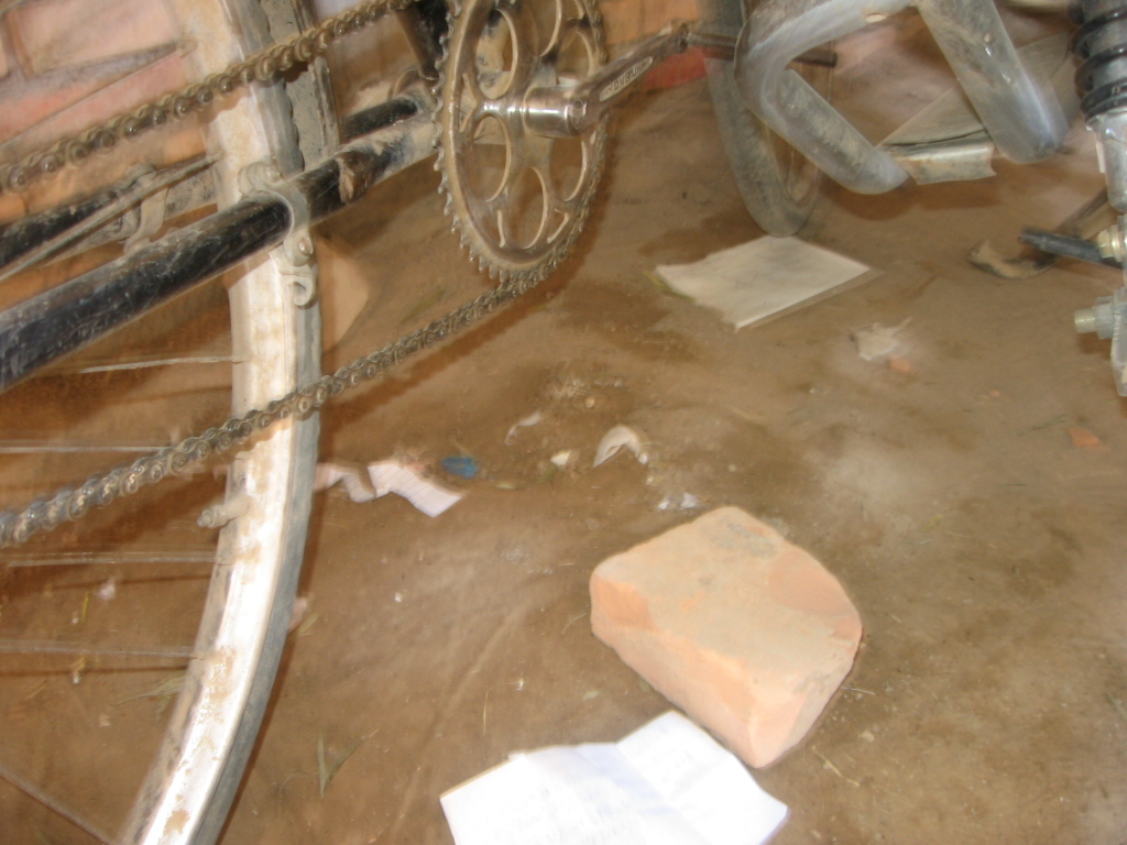 我们校园的车棚建于进校门靠右边的一个角落,因为是一个死角,所以无人在乎。车棚的修建也很简单。底下砌有一层砖;上面用铁架围着,中间有一个铁门。