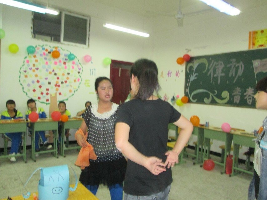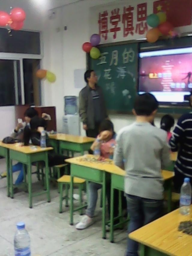晚会当天下午,我们班的班干部就出去买布置晚会用的东西还有吃的。下午吃过晚饭后,班干部们都在积极地布置会场。我没有参与布置会场,不过很容易想象,小小的一间教室,四十几张桌椅,能摆出一个什么样的空间。