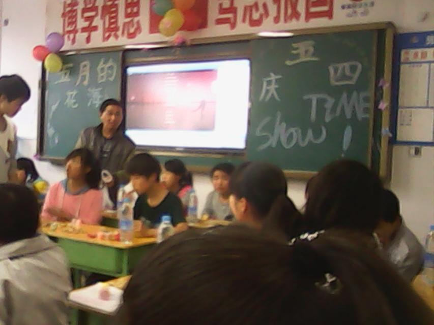 今天晚上,学校让每个班自己组织策划一场五四晚会。刚刚得到这个消息,大家都高兴地欢呼雀跃,心花怒放。嬉笑声在教室里久久回荡。