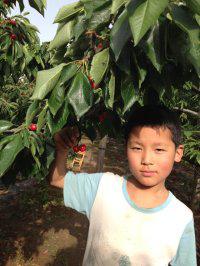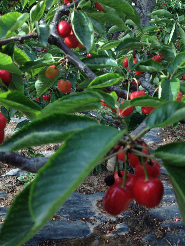 这么美得樱桃,咬一口,满嘴清甜。我想鸟儿该不会也喜欢他吧,主人说他家的樱桃都是农家肥,没喷农药,还在园子上面搭了专门防鸟的细网。鸟只能望樱桃兴叹了。随着主人的介绍,我看到空中的细网,心想这么好的园子,主人真是花了心思呢!难怪,不时有客人一批一批的来采摘。这里的樱桃就不愁买卖,有来自摘的,有来批发的,16元一斤,妈妈买了三斤,我们就边吃边离开了充满生机的樱桃园。五月塬上樱桃树,再见了,我嘴里留下了樱桃果实的香甜,心里记下了种樱桃人的辛劳和精明。明年,我还会来。