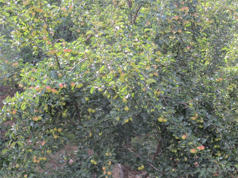 秋天,秋风习习。小苹果变了,变成了核桃般大小的红红的果子。人们把成熟了的小苹果摘下来,忍不住尝了一口,味道酸酸的、甜甜的、脆脆的,真好吃呀!而且这种苹果树的产量特别高,人们把剩下的苹果保存在地窖里,留着冬天慢慢享用。