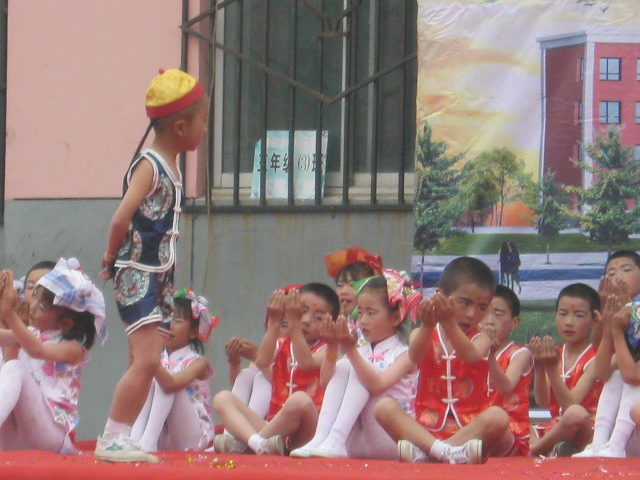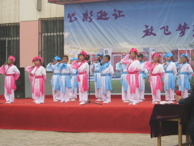 最先是一至三年级的小学生的节目,他们的主题是背诵是朗诵《弟子规》虽然背诵是很呆板的,好象没有可欣赏之处,可他们的服装、动作都别具风格,让我佩服的更是他们的认真、可爱的样子,还真像是古代私塾里的学生似的。 照片中的形象正是二。一班同学的节目,他们在,背诵的同时加了许多舞蹈动作,那可爱的样子迎来了观众和评委老师们的好评。 "凡出言,信为先,诈与妄,奚可焉……"这不只是一个节目,我想,更能让我们学会怎样去做人。