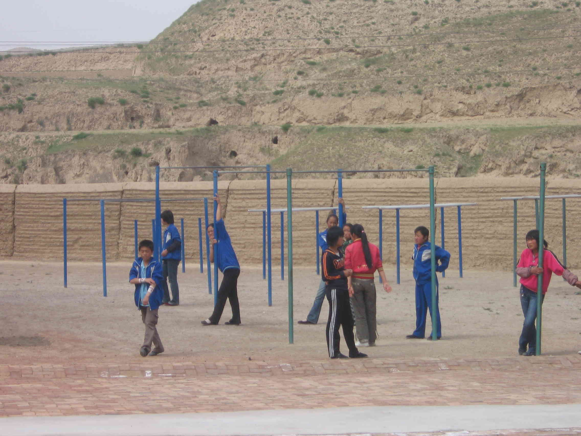 再往前走,有一个操场.操场上有单杠,双杠等运动器材,我们在操场上上体育课,锻炼身体,做各种游戏.这就是我们十分吸引人们的校园.
