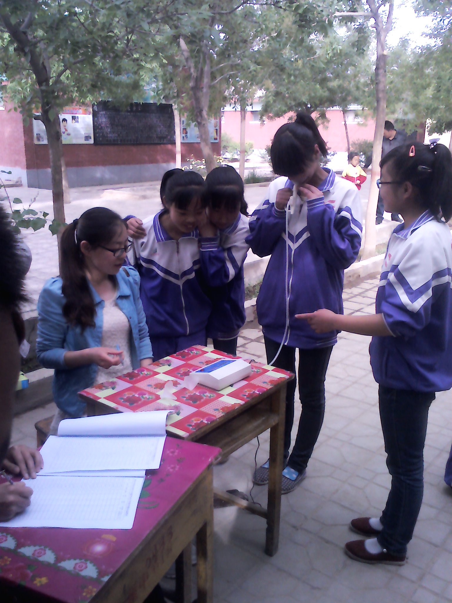 最近,我校进行了体育达标测试,要了解同学们的身体健康状况。测试的内容有身高、体重、肺活量、立定跳远、仰卧起坐。早在前两周,同学们根据自己的情况,进行了针对性的锻炼,因此大家都跃跃欲试,想一展身手。