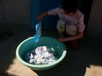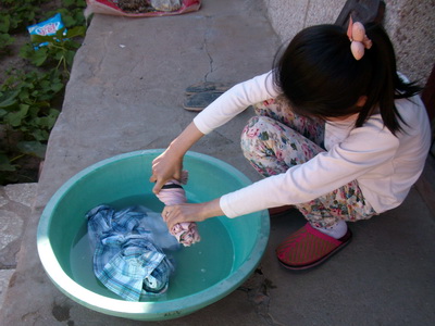 我先把衣服放在搓衣板上,洒上洗衣粉,开始用了地搓,小泡泡顿时涌了出来像一个个小孩子嬉戏玩耍。搓了一会,一看衬衫还是那么脏,我垂头丧气不想洗了。这时想起妈妈对我说的话:"一点小挫折就放弃了,以后怎么实现远大的理想?"我不忍服输,于是接着洗,在脏的地方多放了一点洗衣粉,更加用力地搓起来,顿时衬衫白洁如新。衬衫好像开心地笑了,对我说:"小主人,谢谢你,我今天洗得澡比妈妈洗得还干净,还舒服。"我开心的笑了。