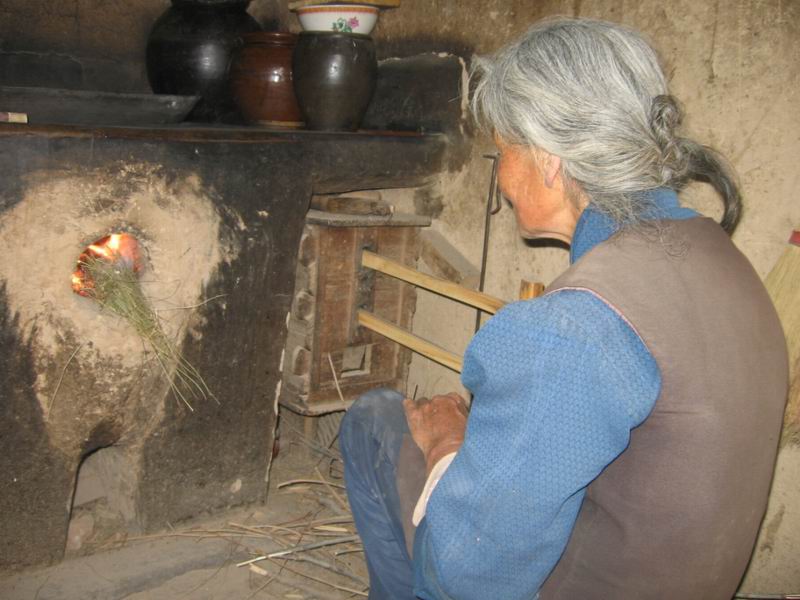 用风匣鼓风需要专门的人操作。一般在锅灶的正前方,一人坐在小板凳上,有手握着风匣的手柄前后推拉,左手还需要往灶火门里放然料。农村中的然料是晒干的牛粪。