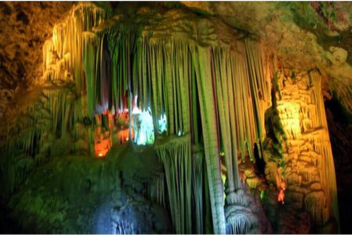 已向游人开放的有天佛洞,百神洞,风洞。洞内石钟乳和石笋千姿百态,各显风采。既有宽敞的大厅,又有夹窄的长廊;既有栩栩如生的龙虎百兽和各种飞禽,又有生气盎然的花草树木和悬崖峭壁;既有和颜悦色的各路神仙和古代将相,又有传说中的豪杰勇士和勤劳智慧的劳动人民,入洞观看,人间万象一览无余。
